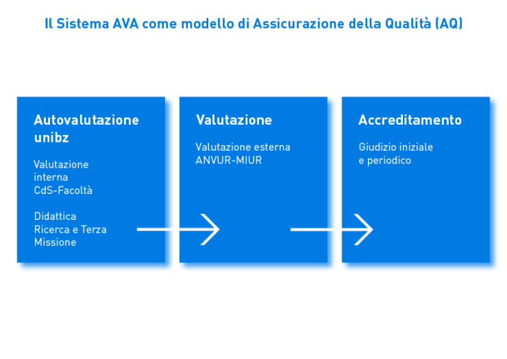 Il sistema AVA (Autovalutazione – Valutazione periodica – Accreditamento), operativo dal 2013, è il modello di Assicurazione della Qualità individuato da ANVUR e ha l’obiettivo di migliorare la qualità della didattica e della ricerca negli atenei italiani.